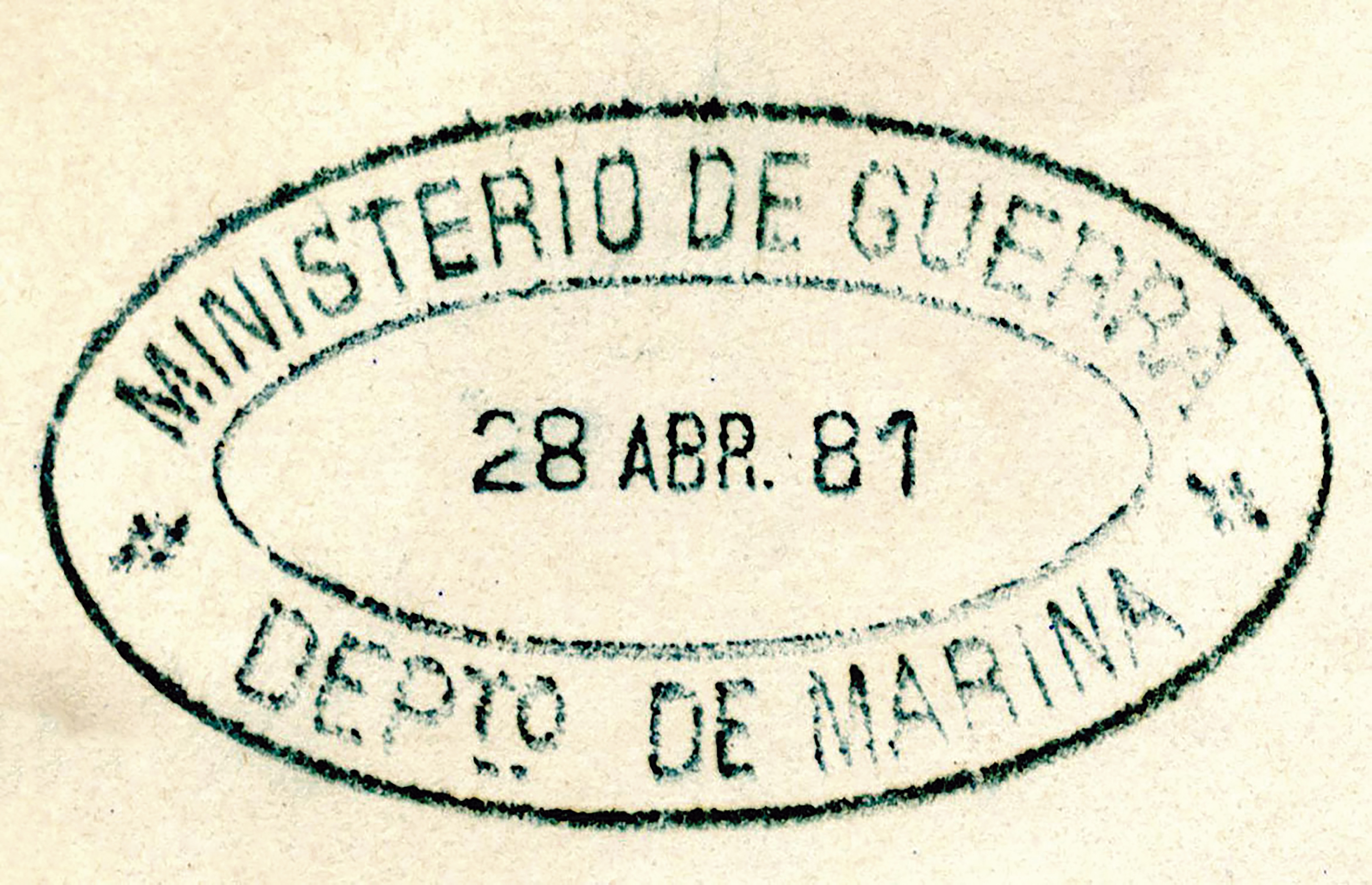 Sello del Ministerio de Guerra y Marina, correspondiente al departamento de Marina, en el año de 1881.