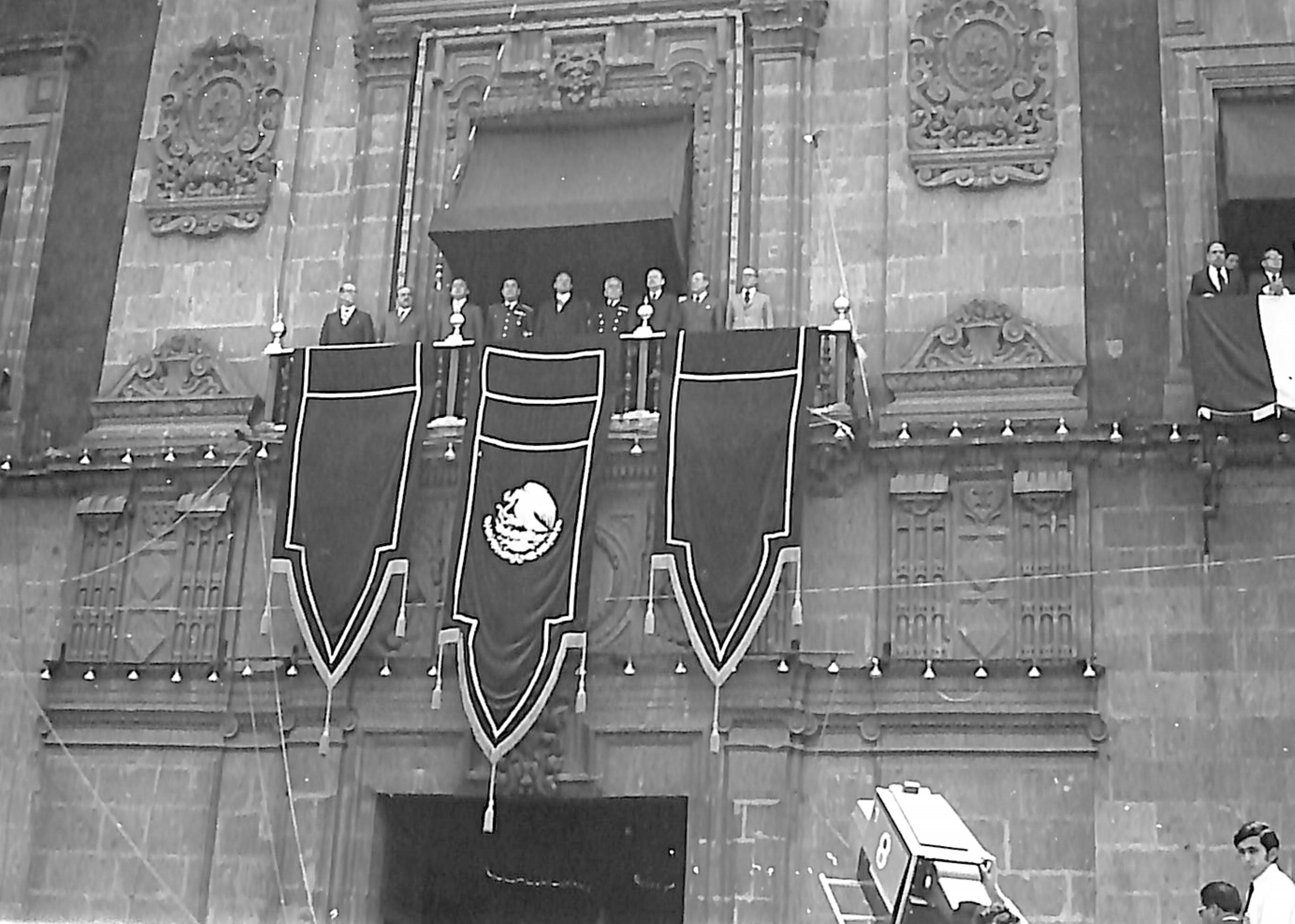 Presidente Luis Echeverria en el balcón presidencial