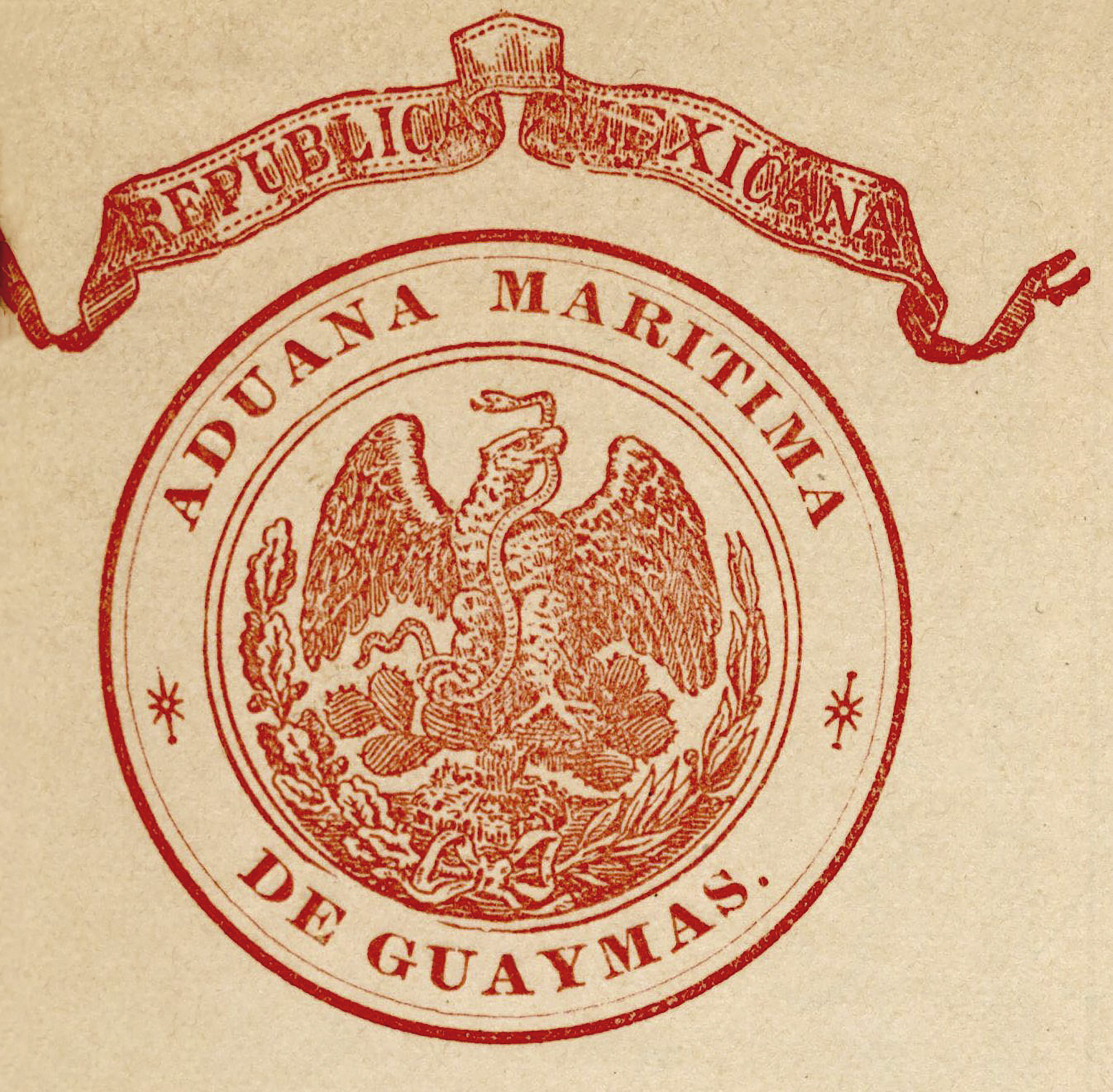Escudo de la República Mexicana, correspondiente a la aduana marítima de Guaymas, en el año de 1900.
