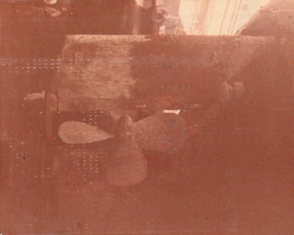 Se observa el daño en la hélice de la nave el "Propermex T-29", posicionada en el astillero de San Carlos.