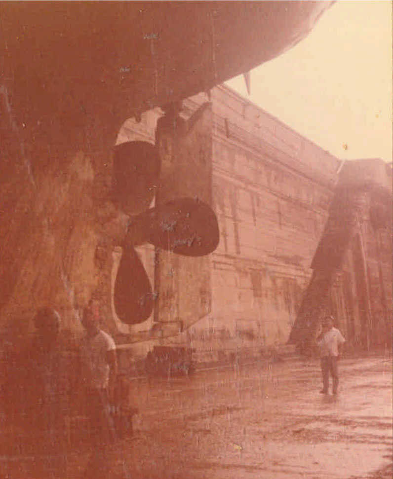 Vista de la parte lateral durante la revisión de la nave el "Propermex T_29", ubicada en el astillero de San Carlos.