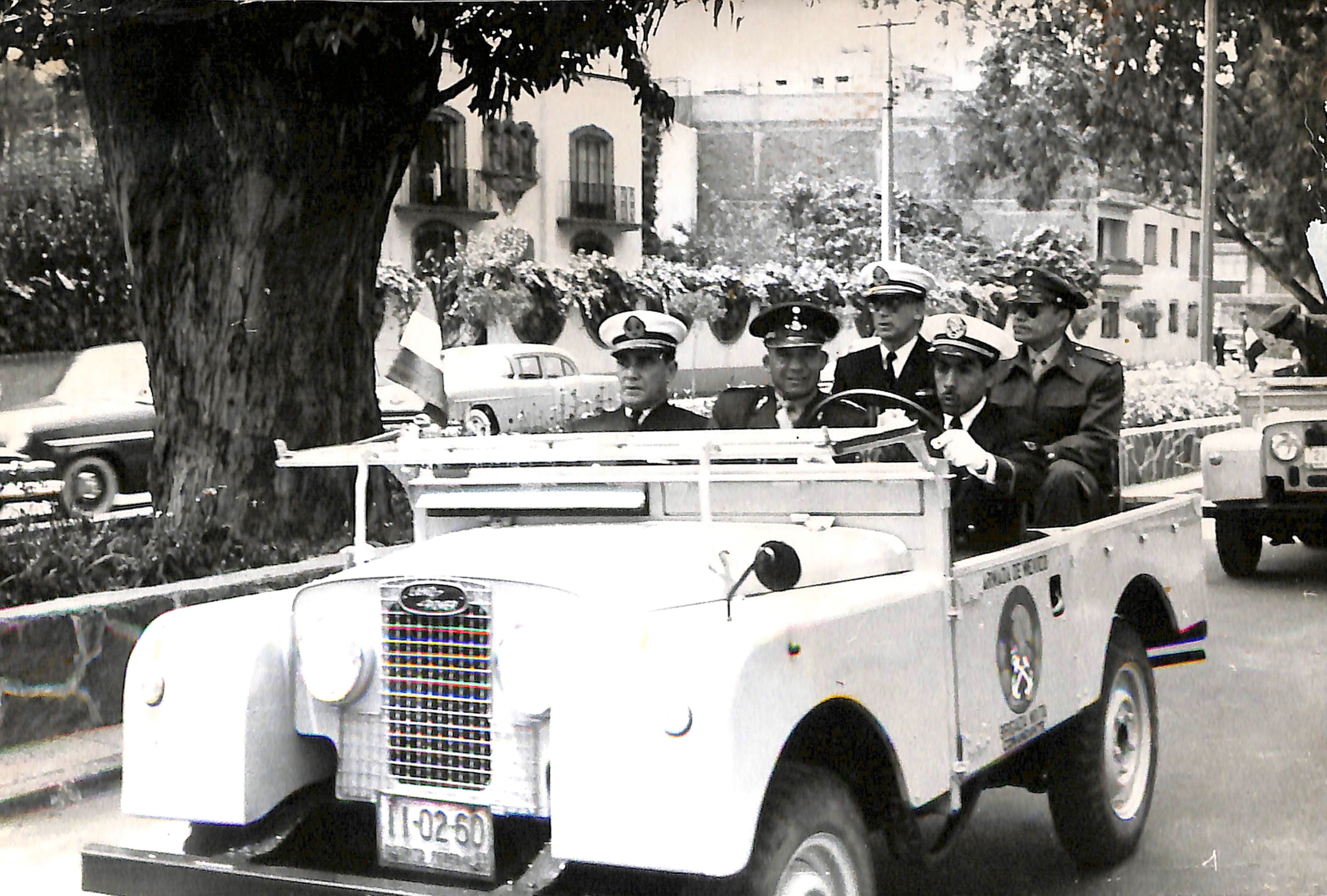 Mandos a bordo de un automóvil, durante desfile militar (1950)