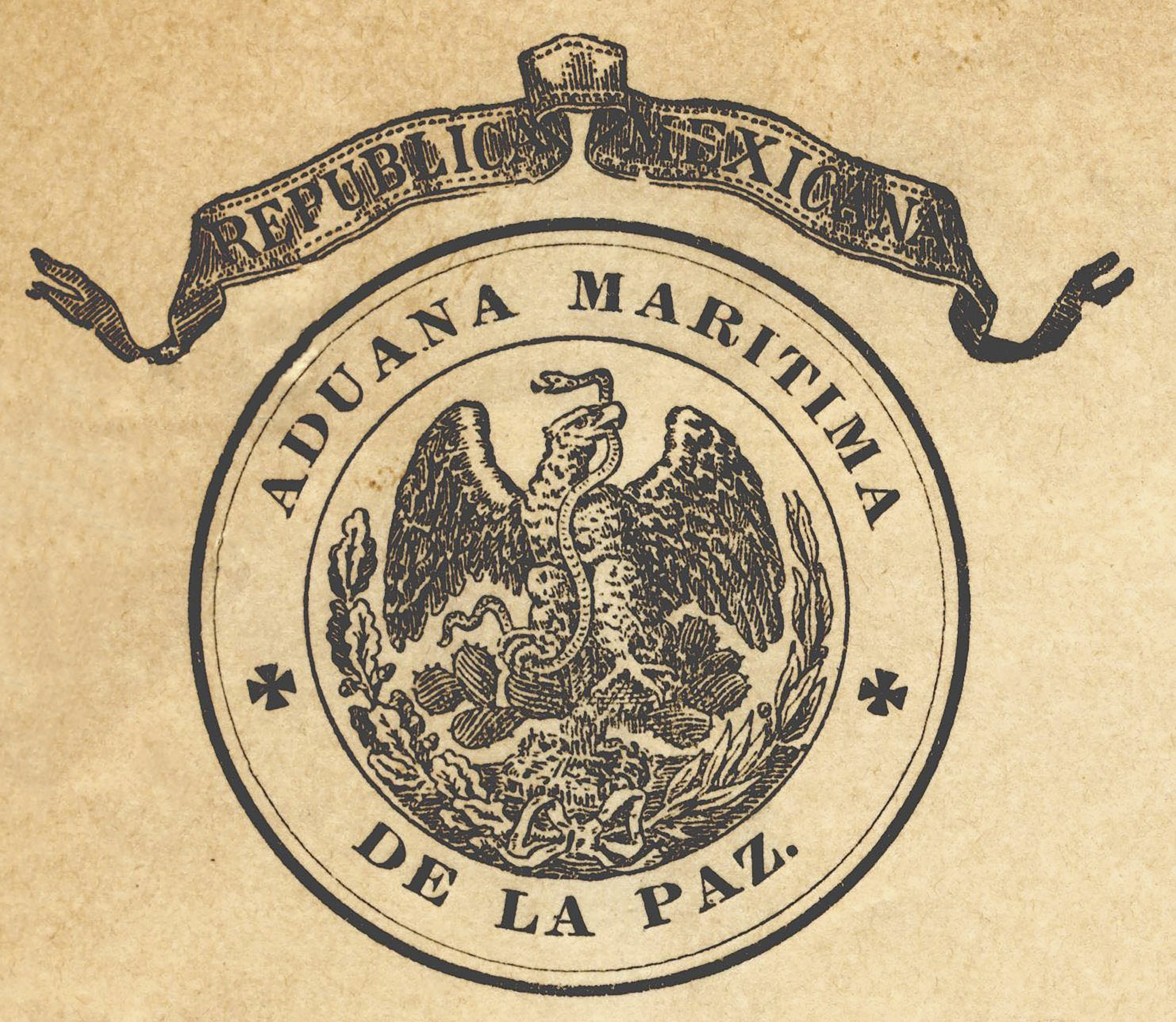 Escudo de la República Mexicana, correspondiente a la aduana marítima de La Paz, en el año de 1897.